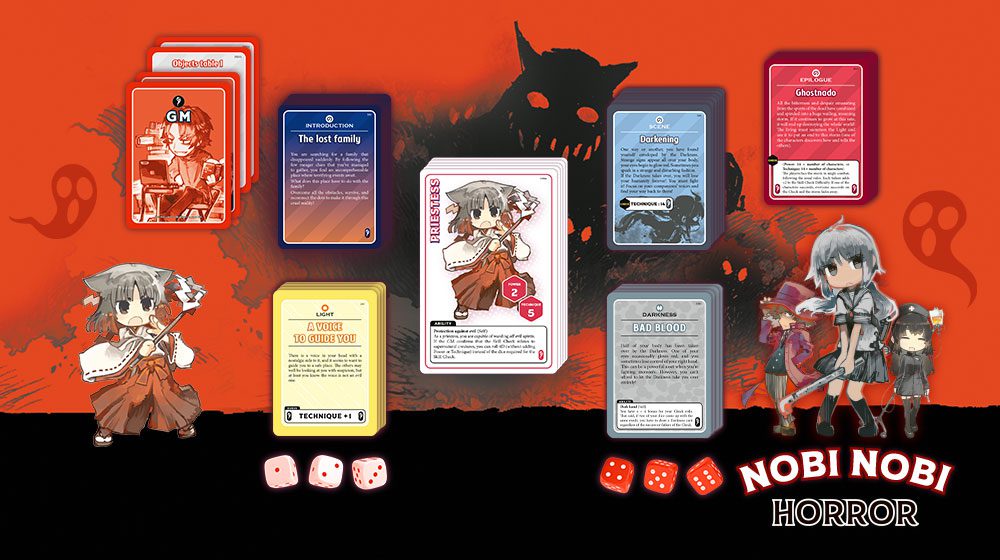 A world of horror, but not too much, made of fear (and a pinch of tension)! In this dynamic, fluid tabletop role-playing game, your quest is built map by map, with the help of hints and twists. Roll the dice, play your cards, and create your story with friends. Apart from your imagination, everything you need is in this box! Simple and didactic, Nobi Nobi will appeal to experienced players and novices alike!
