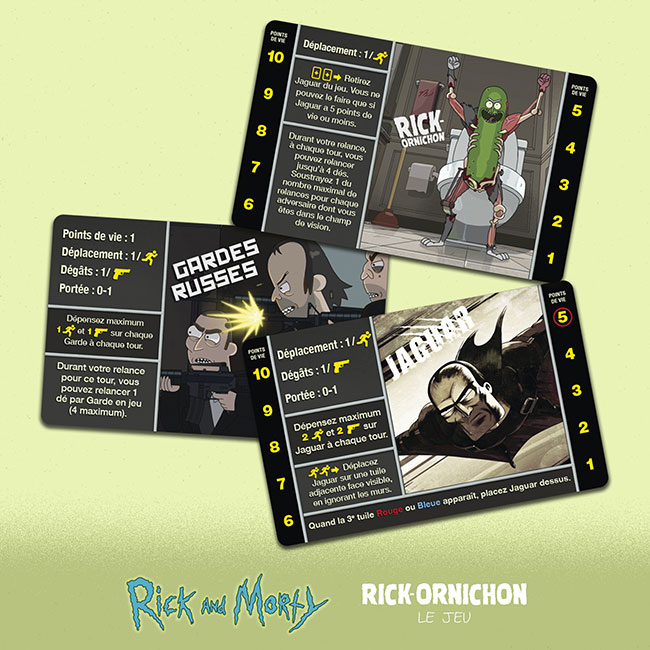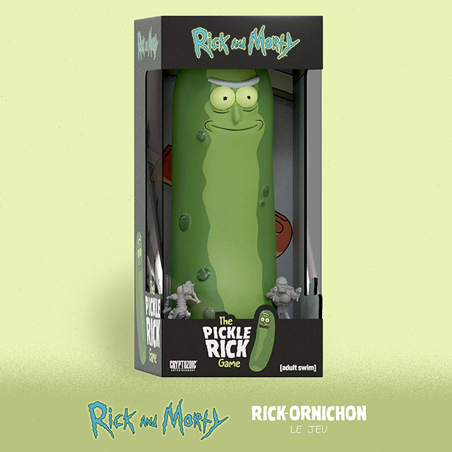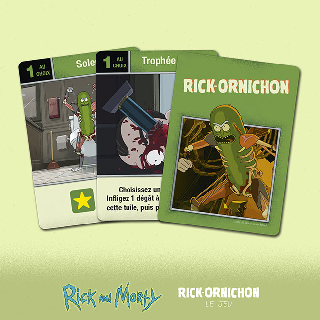 Après avoir édité Rick et Morty : Total Rickall, et en attendant la sortie des 100 jours de Rick et Morty fin septembre, on vous propose dès aujourd’hui le tout nouveau [Rick et Morty : Rick-ornichon le jeu]. De quoi réjouir tous les fans de la série Rick & Morty mais aussi tous ceux qui aiment les jeux asymétriques avec des tuiles, des cartes, des dés… et des Russes !