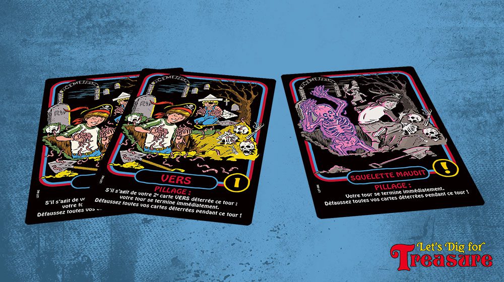 Les enfants rêvent d’aventure la nuit venue… Pourquoi ne pas leur proposer une activité adaptée à leur âge ? Comme une chasse au trésor dans un cimetière glauque ? Ça a l’air fun : prendre une carte dans l’une des 3 pioches pour obtenir de merveilleux trésors… Mais attention à ne pas trop pousser votre chance car vous risquez de tout perdre en tombant sur un méchant squelette maudit ! Récoltez le plus de points lorsqu’une pioche se vide pour gagner la partie.