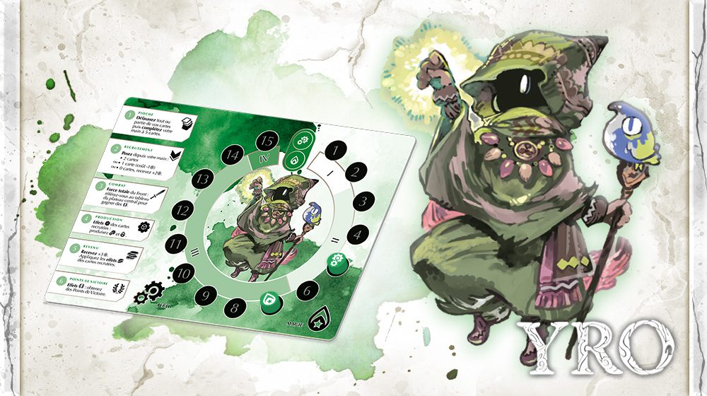 Dans ce jeu de cartes, vous êtes à la tête de l’une des six guildes d’Yro. Les Îles du Soleil croissant sont peuplées de petites mais féroces créatures à moitié animales. Le Conclave sylvestre rassemble les habitants magiques des grandes forêts. Le Marché errant, on ne sait jamais quelle sera la prochaine halte. Les membres de la Société minière creusent sans relâche à la recherche de trésors. Dans la Cité flottante, magie et technologie trouvent leur juste équilibre. L’Ordre des chevaliers dragons défend valeureusement les terres d’Yro depuis des siècles.